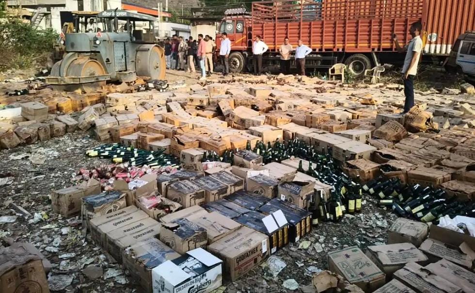आबूरोड में 2 करोड़ की अवैध शराब नष्टः 11 मामलों में जब्त किए थे 3 हजार कार्टन