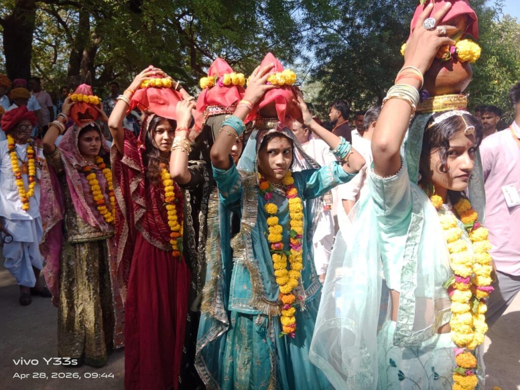 आमलिया में श्री उज्जैन मामा जी मंदिर प्रतिष्ठा महोत्सव के पहले दिन निकली कलश यात्रा व शाम को होगी भजन