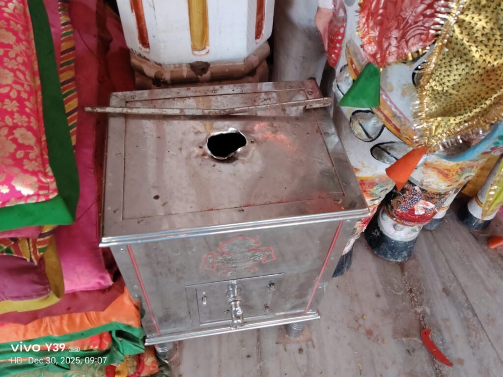 मंदिर के दानपात्र को तोड़ा व स्टोर रूम के ताले तोड़कर सामान अस्त-व्यस्त:-
