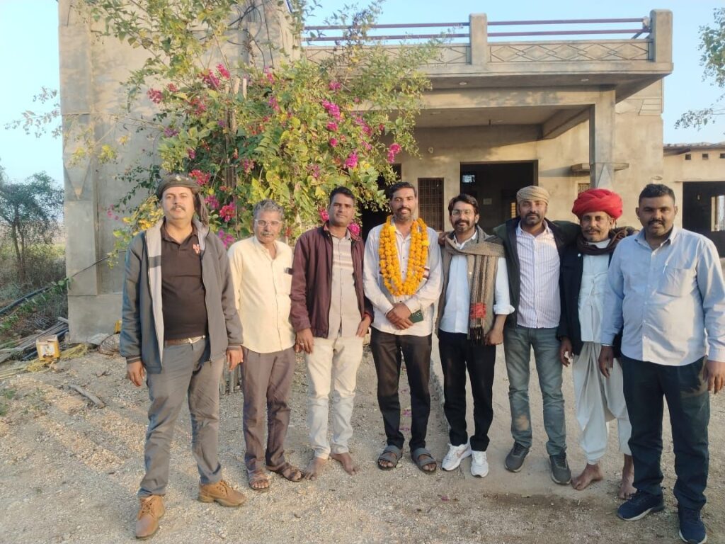 अतिथियों एवं ग्रामीणों ने भूराराम देवासी का राजस्थानी परंपरा के अनुसार साफा पहनाकर और फूलों की मालाओं से लादकर भव्य स्वागत एवं अभिनंदन किया।