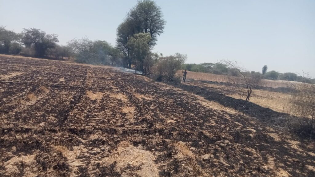 बाली उपखण्ड के भन्दर ग्राम में खेतों में भीषण आग, किसानों को हुआ भारी नुकसान।