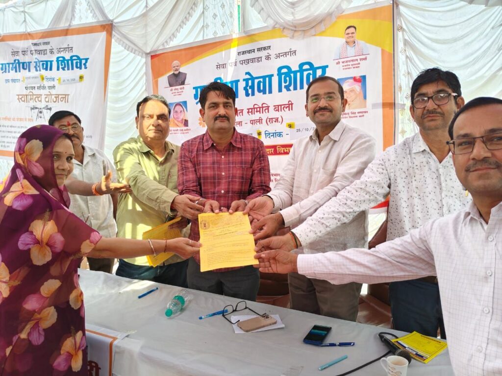 बाली। चामुंडेरी ग्राम में ग्रामीण सेवा शिविर का आयोजन हुआ शिविर में पंचायती राज के पट्टे प्रॉपर्टी कार्ड वितरित तथा राजस्व विभाग के नामांतरण जाति मूल निवास प्रमाण पत्र आय प्रमाण पत्र पीएम किसान रजिस्ट्रेशन ईकेवाईसी तथा कृषि विभाग के मिनी किट जन कल्याणकारी योजनाओं की जानकारी के साथ नए विधुत मीटर, ओर 150 यूनिट फ्री बिजली का पंजीयन भी किया गया साथ ही आवासीय पट्टों का भी वितरण किया गया