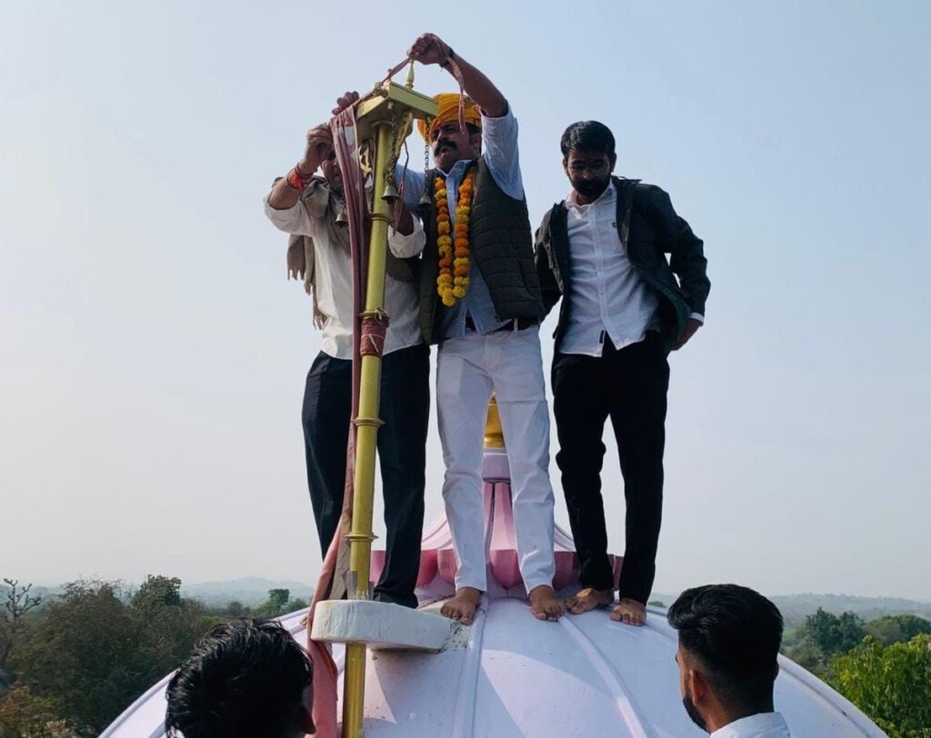 के साथ पहुंचकर मंदिर पर ध्वजा लगाई इस दौरान भोपाजी देवाराम कोतवाल मोडाराम मोती भाई प्रजापत छगन भाई प्रजापत महावीर सिंह जबर सिंह हरि सिंह शंभू सिंह माला राम मीणा सहित गांव के सभी समाज संगठन के युवाओं ने बढ़ चढ़कर वार्षिक महोत्सव कार्यक्रम को सफल बनाया