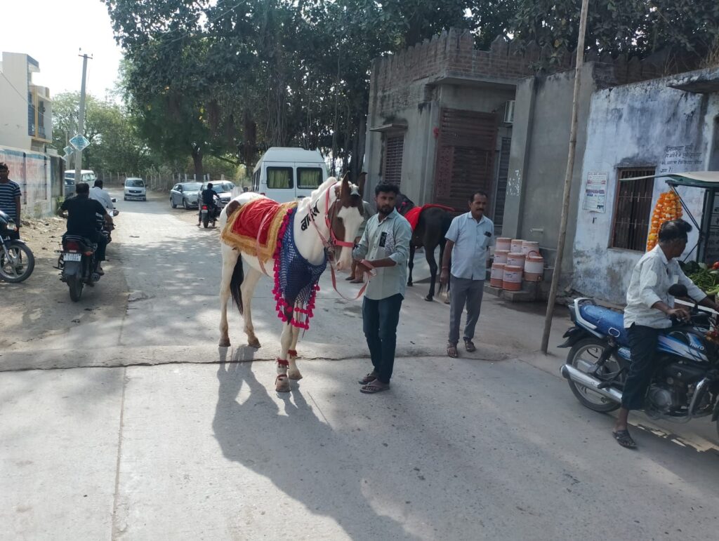 कार्यक्रम के दौरान मंदिर में आरती के साथ विधिवत छप्पन भोग अर्पित किया गया। वहीं महिला श्रद्धालुओं द्वारा मंगल गीत गाए गए, जिससे वातावरण और अधिक भक्तिमय हो उठा। मंदिर के बाहर घोड़ों ने आकर्षक नृत्य प्रस्तुत कर सभी का मन मोह लिया।