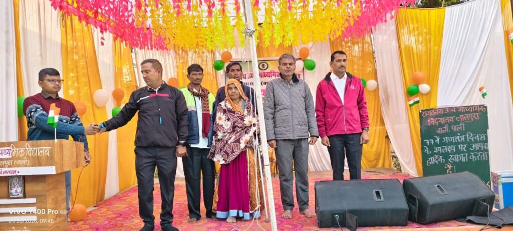 बाली उपखंड के लालपुरा में गणतंत्र दिवस हर्षो उल्लास के साथ मनाया गया लालपुरा ग्राम में सरपंच रकमा देवी मीणा ने किया ध्वजारोहण इस दौरान सरपंच प्रतिनिधि कपूरा राम मीणा ग्राम विकास अधिकारी कृष्ण पाल सिंह सहायक ग्राम विकास अधिकारी भीमाराम मकवाना समाज सेवि जनक भान सिंह राठौड़ वार्ड पंच नगीदेवी देवी बाई बजरंग कुमार सहित विभिन्न ग्रामीण जनप्रतिनिधि मौजूद रहे