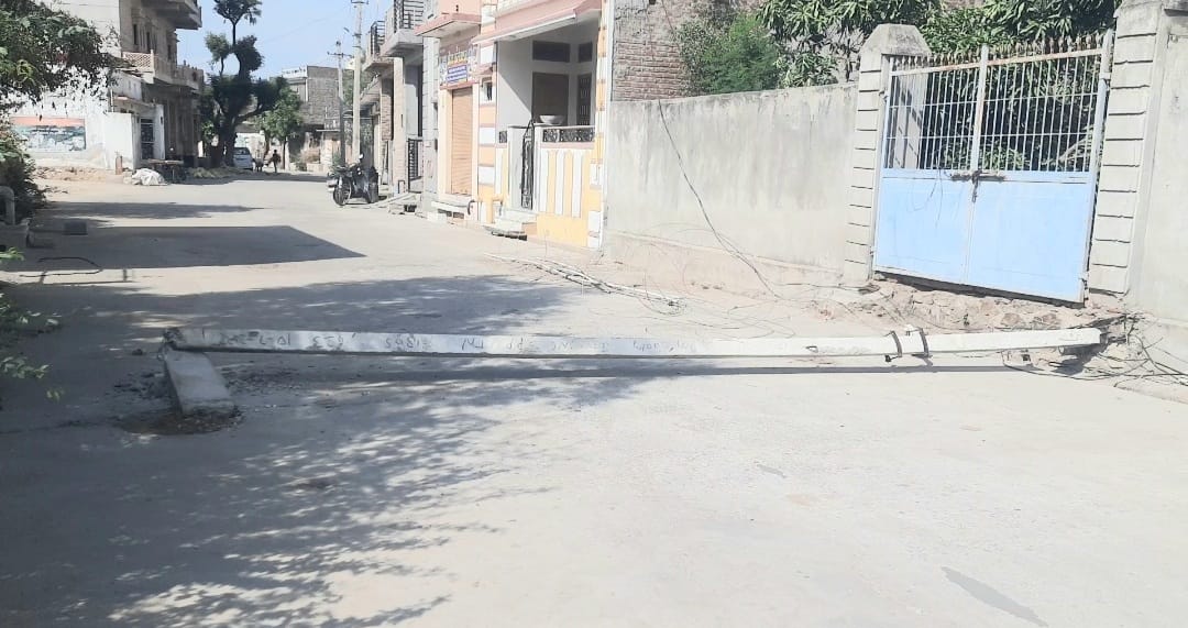 तखतगढ-उचित मूल्य की दुकान पर माल ढोने आए ट्रक ने गिराया विद्युत पोल,सुबह 10 बजे से सभी घरो कि लाइटे बंद,लोग परेशान