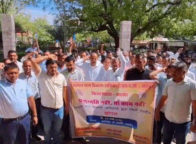 जालोर-VDO बोले-8 अप्रैल को करेंगे CM-हाउस का घेरावः 11 सूत्री मांगों के साथ कलेक्ट्रेट पर प्रदर्शन; कहा-जैसा काम वैसा मिले वेतनमान