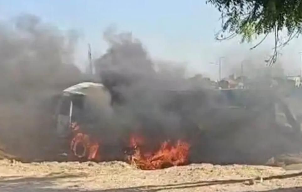 सांडेराव-नशे में ड्राइवर ने ट्रेलर को लगाई आग: ट्रेलर जलकर हुआ खाक, पुलिस ने चालक का करवाया मेडिकल