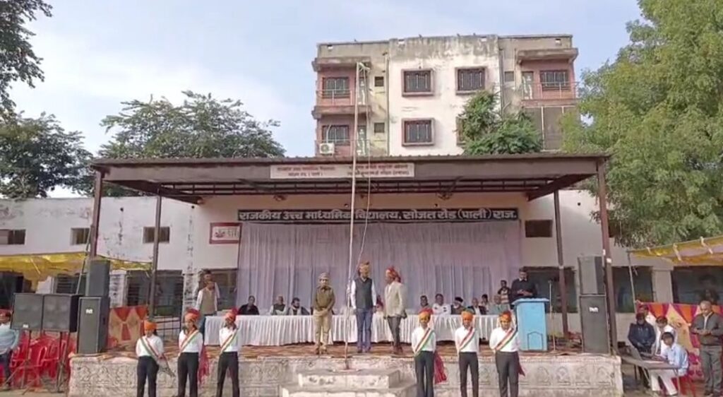 नगर पालिका स्तरीय गणतंत्र दिवस समारोह का आयोजन पीएम श्री राजकीय उच्च माध्यमिक विद्यालय, सोजत रोड के खेल मैदान में गरिमामय रूप से किया गया। समारोह में नगर पालिका अधिशासी अधिकारी सुनील विश्नोई ,व थाना अधिकारी कमला लोहार ने ध्वजारोहण कर मार्च पास्ट की सलामी ली।