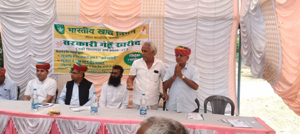 तखतगढ 27 फरवरी(खीमाराम मेवाडा) पाली जिले में पिछले वर्ष 2025 – 26 मैं भारतीय खाद निगम अजमेर मंडल द्वारा पहली बार शुभारंभ किए गए गेहूं खरीद केंद्र पर सर्वाधिक गेहूं खरीदी करने वाला तखतगढ़ समर्थन मूल्य केंद्र पाली जिला बनने के अब तक प्रथम स्थान पर रहा है। जहां इस बार भी नए लक्ष्य के साथ सक्रिय हो गया है। शुक्रवार को तखतगढ़ एवं सुमेरपुर क्षेत्र में केंद्र व राज्य सरकार के सहयोग से संचालित समर्थन मूल्य पर खरीद केंद्र पर किसानों एवं मीडिया प्रतिनिधियों के सम्मान समारोह आयोजित किया गया। कार्यक्रम में एफसीआई अजमेर के प्रबंधक राकेश कुमार मुख्य अतिथि रहे। उन्होंने पिछली बार वर्ष 2025-26 की खरीदी में उत्कृष्ट प्रदर्शन करने वाले किसानों व मीडिया कार्मिकों को प्रशस्ति पत्र देखकर सम्मानित किया।