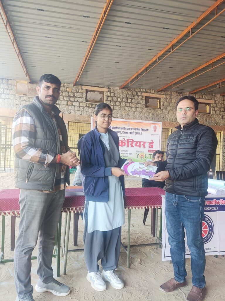 तखतगढ 12 जनवरी (खीमाराम मेवाडा) सोमवार को स्थानीय संघवी केसरी राजकीय उच्च माध्यमिक विद्यालय तखतगढ़ में स्वामी विवेकानंद जयन्ती के अवसर पर राष्ट्रीय युवा दिवस व कॅरियर-डे का आयोजन किया गया।कार्यक्रम का आगाज प्रधानाचार्य गजेन्द्र सिंह तंवर द्वारा माँ सरस्वती व स्वामी विवेकानंद जी के माल्यार्पण व दीप प्रज्वलित करने के साथ किया गया। आज के इस कार्यक्रम में विभिन्न प्रतियोगिताओं यथा – भाषण प्रतियोगिता, पत्र-वाचन प्रतियोगिता, निबन्ध प्रतियोगिता, चार्ट व रंगोली प्रतियोगिता का आयोजन किया गया।