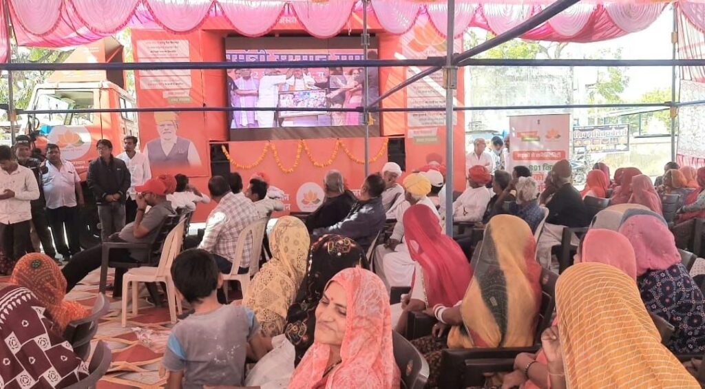 कार्यक्रम को संबोधित करते हुए युवा पार्षद राजेश कुमावत ने कहा कि आज से 10 साल पहले पेंशन के खाते आपके खाते में नहीं आते थे केंद्र की मोदी सरकार ने आपके खाते खुलवाए सीधे पैसे खाते में, किसानों के खाते में ₹6000 सीधे डालें उसे बढ़ाकर भजन लाल सरकार ने ₹2000 और बड़ा कर ₹8000 सीधे खाते में डालें, बच्चियों बच्चे जन्म लेने पर सीधे आपके खाते में पैसे पहुंचने लगे, आपके मकान बनाने के लिए प्रधानमंत्री आवास योजना के तहत पहले डेढ़ लाख रुपए मिलते थे उसे बढ़ाकर अब भजनलाल सरकार ने ढाई लाख रुपये सीधे खाते में आप तक पहुंचाए, क्या यह कार्य 10 साल पहले होते थे नहीं सिर्फ वोट बैंक की राजनीतिक हो रही थी। उन्होंने पहाड़ी आवाज में चलेंगे देते हुए कहां की कौन कहता है विकास नहीं हुआ जो सामने खुले मंच पर आए। कार्यक्रम के दौरान महाराणा प्रताप चौक के बाद नाग चौक सहित विभिन्न जगहों पर आयोजित कार्यक्रम में उपस्थित जन समूह को विकास रथ पर लगी स्क्रीन के माध्यम से केंद्र व राज्य सरकार की योजनाओं से अवगत करवाया