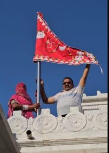 ढोल थाली की झनकारो एवं जयकारों के साथ शीतला माता मंदिर दुसरी वर्ष गांठ पर धुमधाम से चढ़ाई ध्वजा