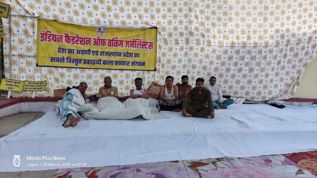 उपेक्षा से आक्रोशित पत्रकारों ने अब शहीद स्मारक पर ही ‘अनिश्चितकालीन धरने’ का बिगुल फूंक दिया है। पत्रकारों का स्पष्ट संदेश है— “जब तक न्याय नहीं, तब तक घर वापसी नहीं।” धरने की पहली रात प्रदेशाध्यक्ष उपेन्द्र सिंह राठौड़, उपाध्यक्ष विष्णु दत्त शर्मा, जोधपुर संभाग प्रभारी विक्रम सिंह करणोत, कोषाध्यक्ष नकुल शर्मा, हरपाल सिंह, गणेश प्रजापति, बलवीर सिंह सैनी, सुनील यादव और विनीत पारीक सहित कई पत्रकार साथी डटे रहे।